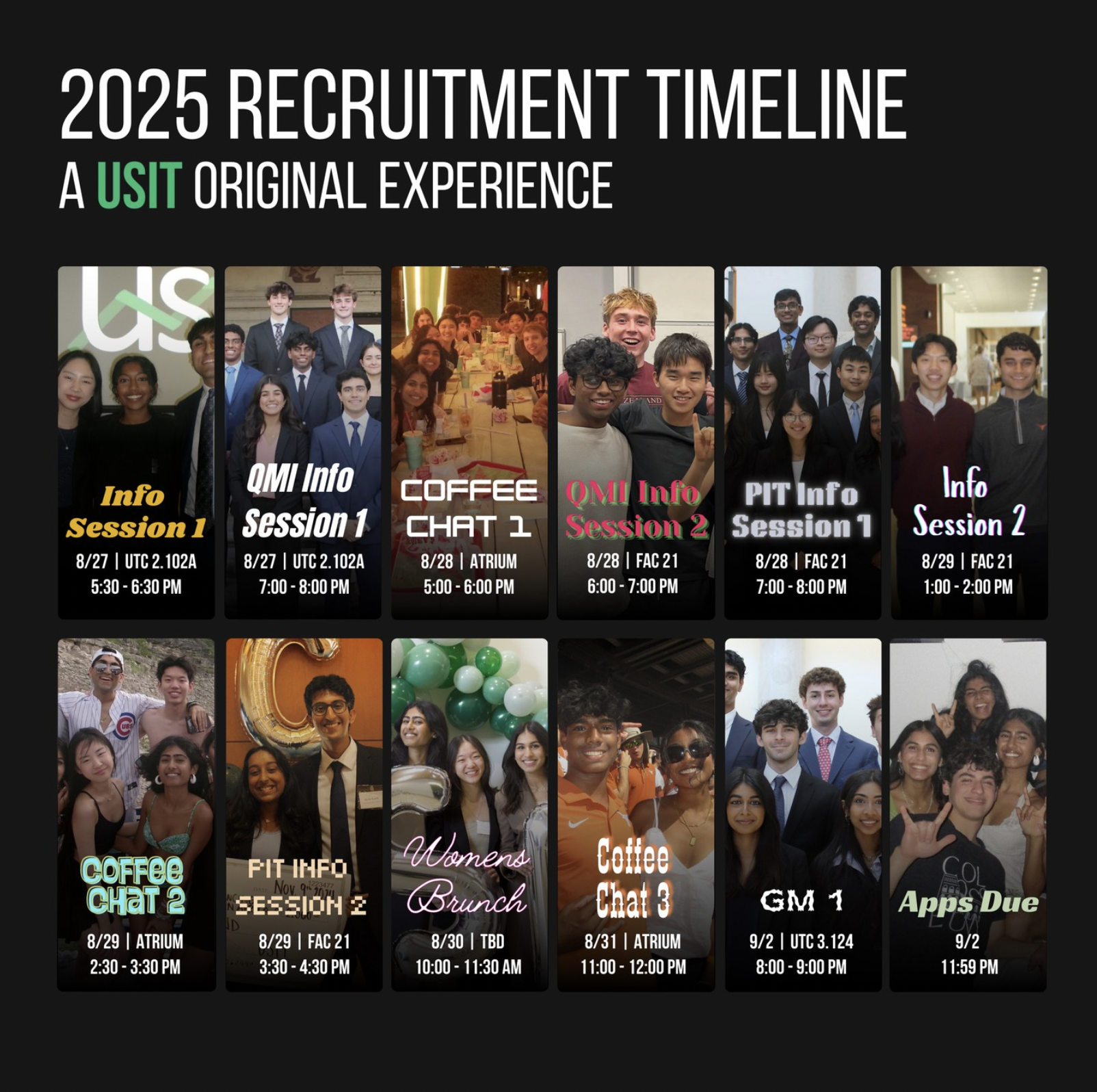For details on how to become a member of USIT's Strategic Capital Croup (SCG) or Director Board please visit the respective team description pages. Only due paying members will be considered during the recruitment process. Paying dues is also a pre-requisite to joining USIT Analyst Groups and Industry Funds.